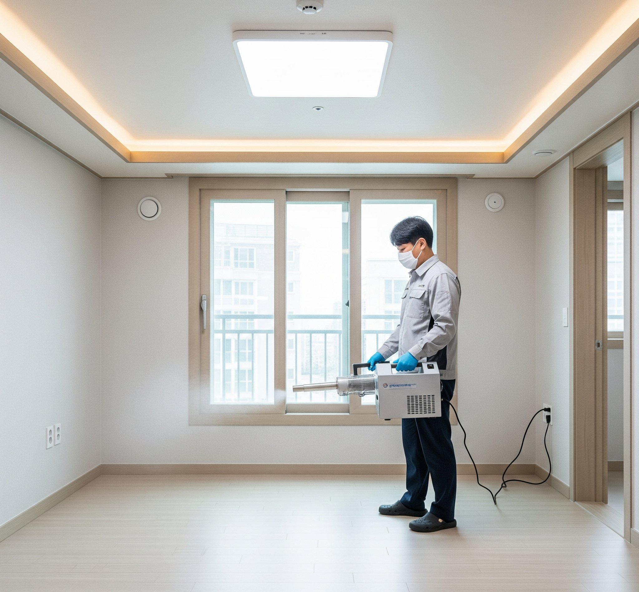 클리닝이 완료된 공간을 위생적으로 소독하여 세균 번식을 막고, 고객이 즉시 다음 인테리어 공정이나 재사용을 준비할 수 있는 완벽한 상태로 마무리합니다.
