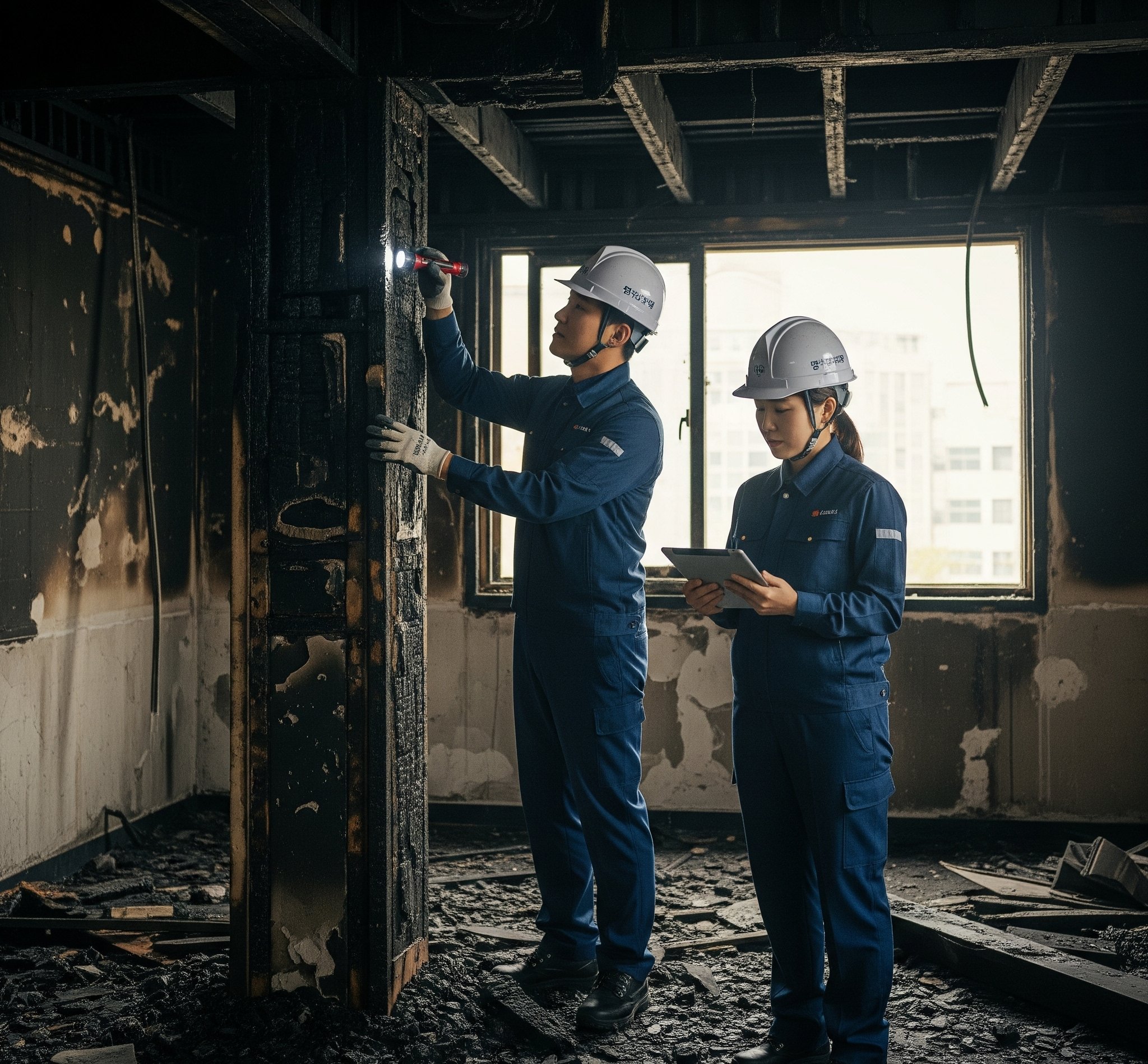 현장의 구조적 위험 요소를 먼저 파악하고 안전을 확보합니다. 이후, 그을음의 확산 범위, 유독 물질의 종류, 자재의 손상 정도를 정밀하게 분석하여 최적의 복구 계획을 수립합니다.